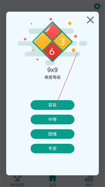 进入游戏后,首先会看到难度选择的界面,你可以根据自己的实际能力挑选合适的难度等级,比如选择最简单的那一项,之后就能正式开启数独关卡的挑战了。