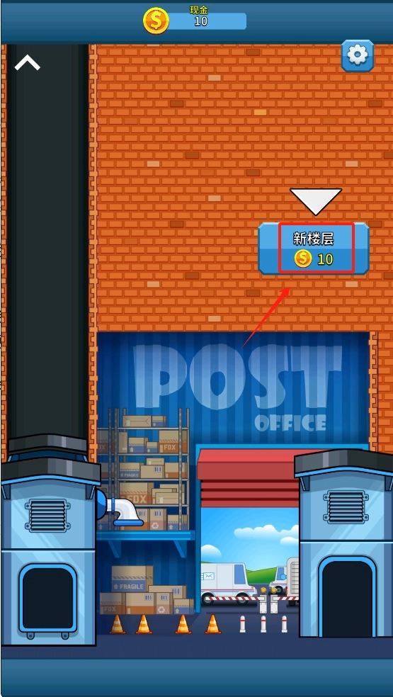 3、应对突发天气、贵重包裹等变量,考验玩家应急管理能力。游戏启动后,点击“新楼层”按钮,消耗10金币解锁新楼层,以此拓展游戏空间,为接下来的操作打好基础。
