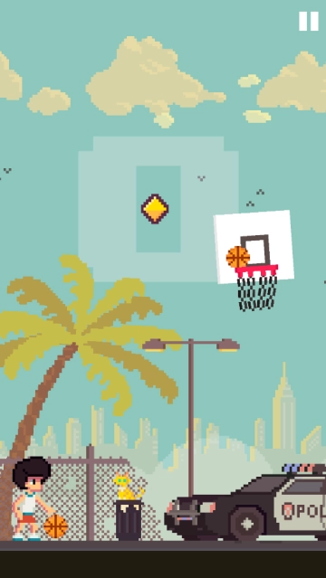 玩家的任务是操控小男孩完成投篮,只需按住屏幕,小男孩与篮筐之间便会自动生成一条弧线。
