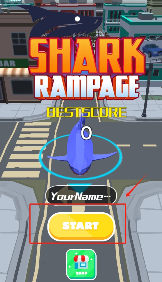 找到界面上醒目的黄色启动按钮并点击,即可开启游戏进程;随后在指定的输入区域填写玩家名称;若想进入商城选购物品,点击对应的商店入口按钮即可。