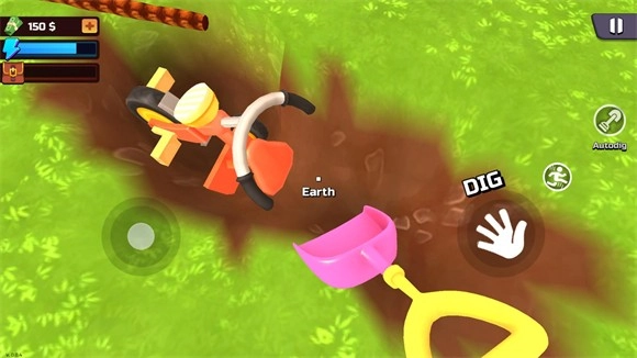 核心玩法是向下挖掘,借助持续开挖土地去探索地下世界。挖掘时会遇到各种各样的物品。
