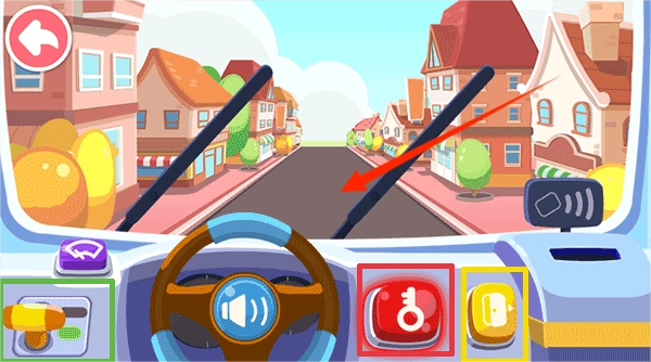 进入驾驶界面后,点击操作按钮启动公交车,随后沿着街道行驶,途中接送小动物们。