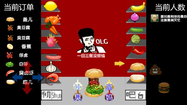 当根据顾客的具体需求完成定制后,顾客会给出“这味道绝了!朋友”的反馈,并能得到若干奥力点数,这些点数可用于兑换制作老八汉堡所需的各类食材。