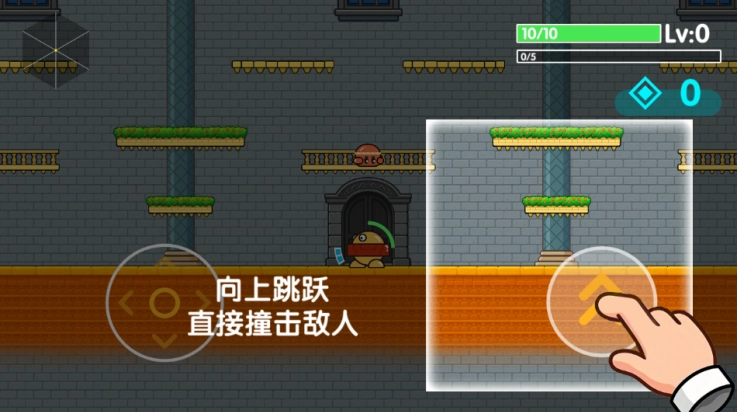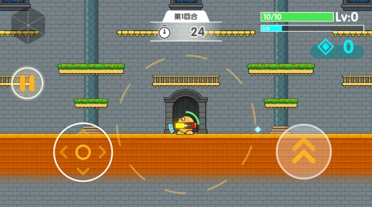这款游戏属于平台跳跃类型,核心玩法结合了经典的平台跳跃机制与幸存者游戏的特色元素。在游戏过程中,角色会自动发起攻击,玩家只需操控其左右移动和跳跃即可。游戏的关卡任务不仅要求玩家在规定时间内保持存活,还加入了消灭特定数量敌人、占据指定区域等额外目标。 每完成一个关卡,玩家都能随机提升角色的属性值。当角色等级达到特定阶段时,会解锁连杀被动技能。此外,游戏还设计了主动技能:跳跃过程中角色可变形为球形撞击敌人,对普通小怪能实现一击必杀,且撞击成功后会获得二次跳跃的机会。