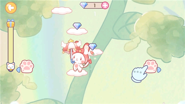 游戏界面的左右两侧各有一个小猫爪图标,点击左侧的猫爪,小猫就会向左跳跃;点击右侧的猫爪,小猫则会向右跳跃。