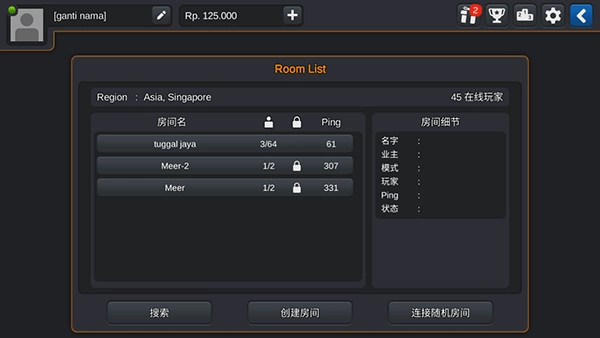 选好服务器后,既可以创建房间等候其他玩家加入,也能够直接加入他人已创建的房间。