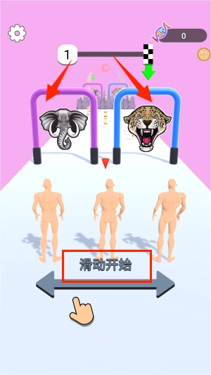 滑动即可开启游戏,左侧为大象,右侧是老虎,选择不同的方向会带来截然不同的进化体验。