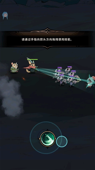 通过手指滑动箭头拖拽来使用技能;