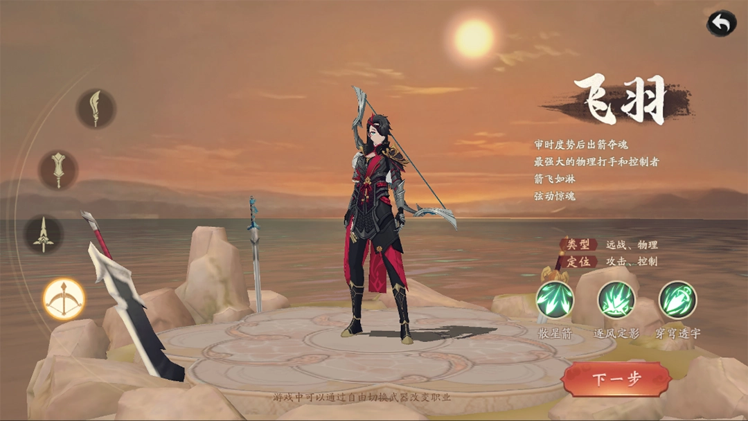 飞羽以弓箭为武器,定位为物理伤害职业,擅长远程攻击,能打出高额单体伤害。