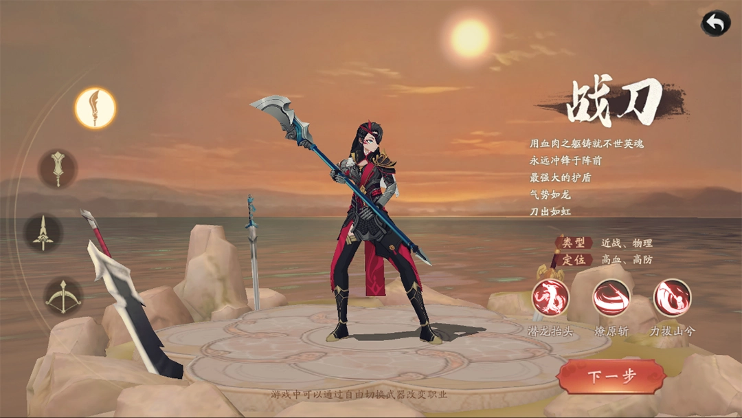 战刀属于近战职业,以手持大刀的姿态冲锋在战斗前线,它的长处在于生命值充沛、防御能力出色,能够承受住大量的伤害。