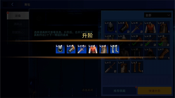 点击“快速升阶”按钮,就能一键完成所有装备的升阶操作。