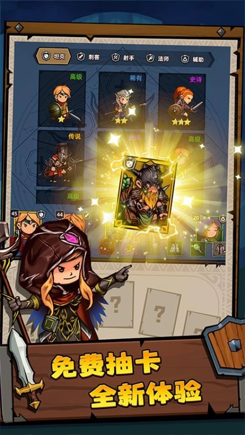 游戏设有无限次抽牌机制,玩家可借此获取英雄、技能与装备。