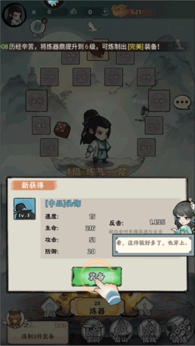 点击“再生之境”开始运行后,在拿到第一份装备后,大家还需要继续进行炼器操作,以此来获取更优质的装备。