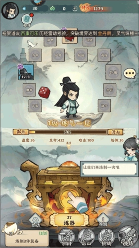 水墨风格的《再生之境》包含了无限炼器、外出寻宝、捕获灵宠、功法领悟以及渡劫飞升等玩法,构建出一个完善的修仙世界。