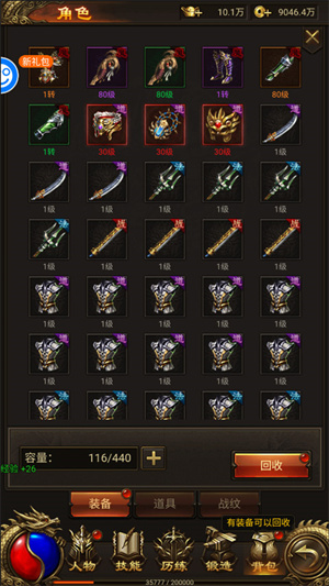 背包:这是供大家存放物品的地方,主要功能包括存放装备、道具和战纹,还能扩展装备空间。不过我个人觉得没必要详细介绍,大家大致了解一下就行。