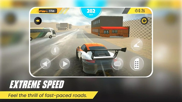 在赛道上,玩家可以通过左右倾斜设备,或者点击屏幕两侧的箭头,来操控赛车的行驶方向。