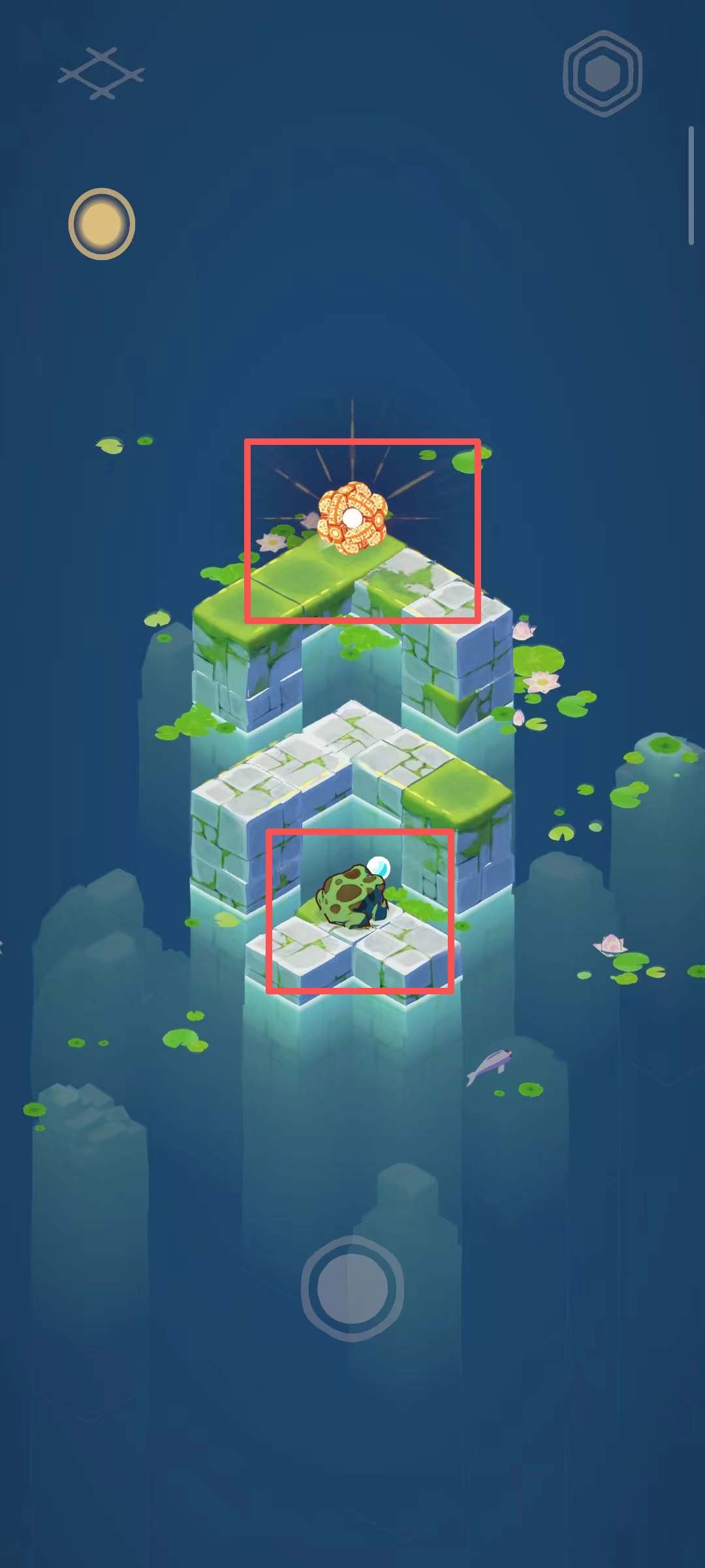 当青蛙成功抵达特殊物体所在的方块位置时,便会触发互动效果,从而完成该阶段的目标,为后续的进一步探索或奖励获取筑牢根基。