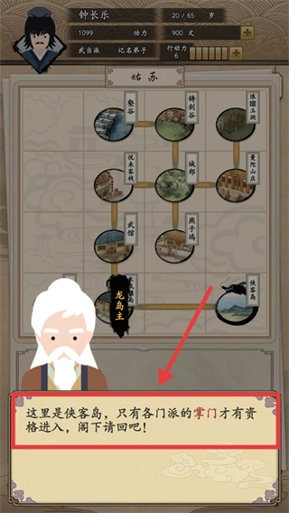 侠客岛仅允许各派掌门进入,您目前的身份不符合准入条件,请待后续晋升为掌门后再前往尝试。