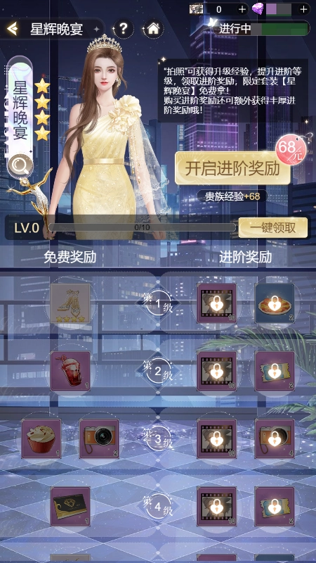 活动期间解锁【星辉晚宴】进阶奖励,能获取更多【底片】帮助三小姐兑换喜欢的活动服饰,还包含丰富道具奖励,性价比超高,千万别忘记购买呀!
