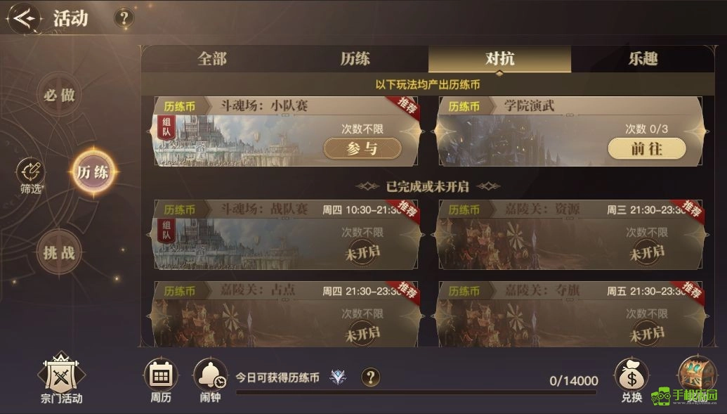 除去每日必做任务外,日常任务还包含历练活动。历练活动会产出历练币,且每日获取的历练币存在上限,那么该如何决定参与哪些日常任务呢?我们可以先了解一下历练活动的具体分类。