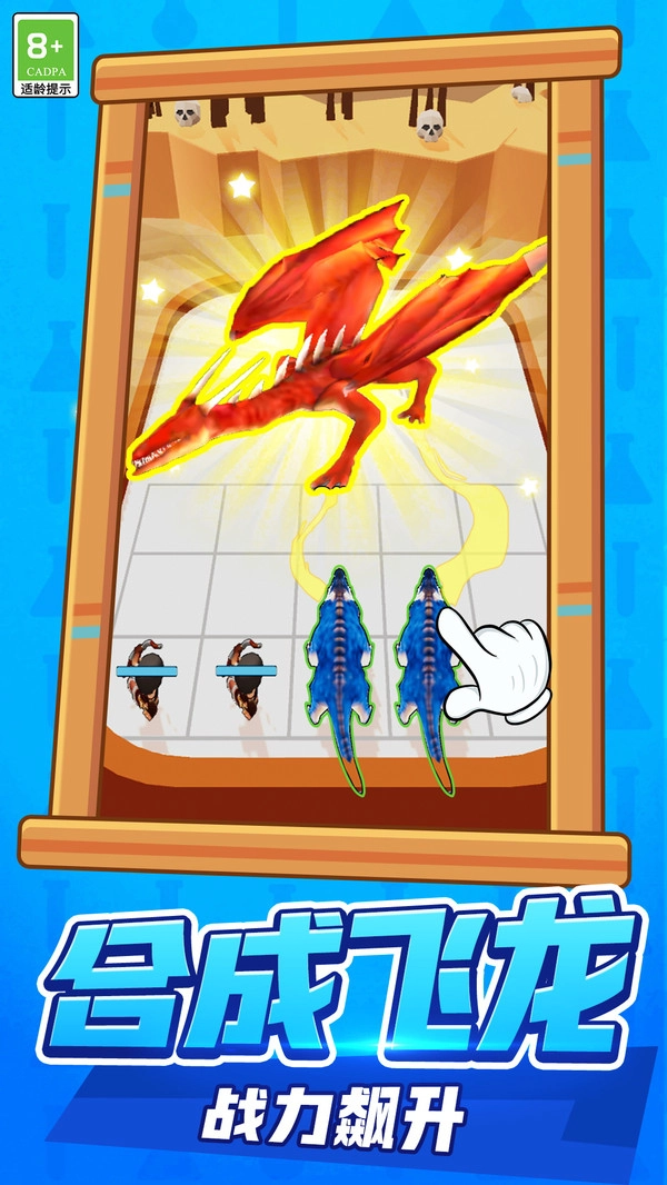 通过持续合成来获取更强大的龙,运用多样策略击败对手,向更高难度的关卡发起挑战。