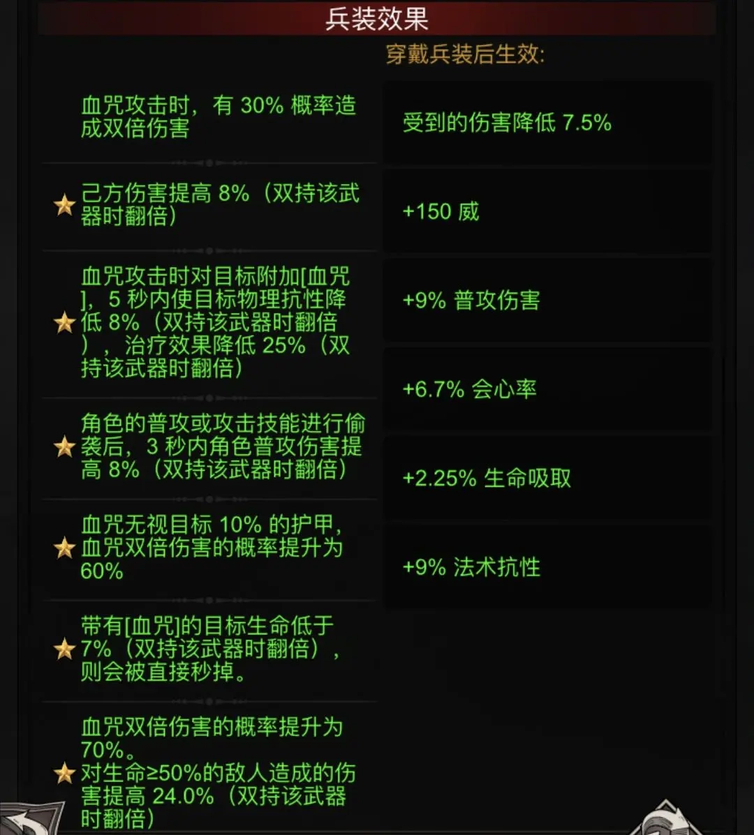 血咒是普攻机制类的兵装,核心输出依赖武器普攻,其攻击采用偷袭模式,按从右往左的顺序发起。它拥有全游戏独有的斩杀机制,当目标生命值低于特定数值时会被直接秒杀。