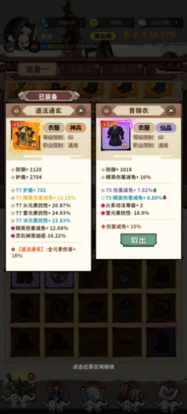 衣服方面有两种选择:道法通玄和高免伤的紫色衣服。其中道法通玄的属性偏向输出,高免伤的则更侧重生存,大家可以根据自己的实际情况来进行搭配。