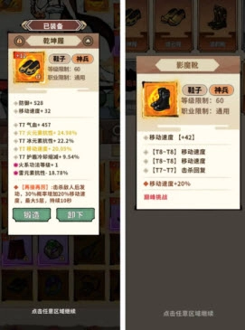 鞋子方面有乾坤履和影魔鞋这两款选择。其中乾坤履比较适合在普通地图里快速刷图,而影魔鞋则更适合在伤害不足的时候用来挑战镇妖玩法。