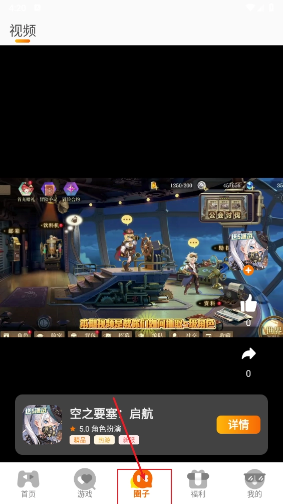 在"圈子"板块,可以进行上下滑动查看游戏视频。