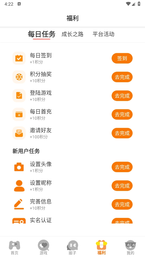 每日任务,完成相应的任务即可获得积分。