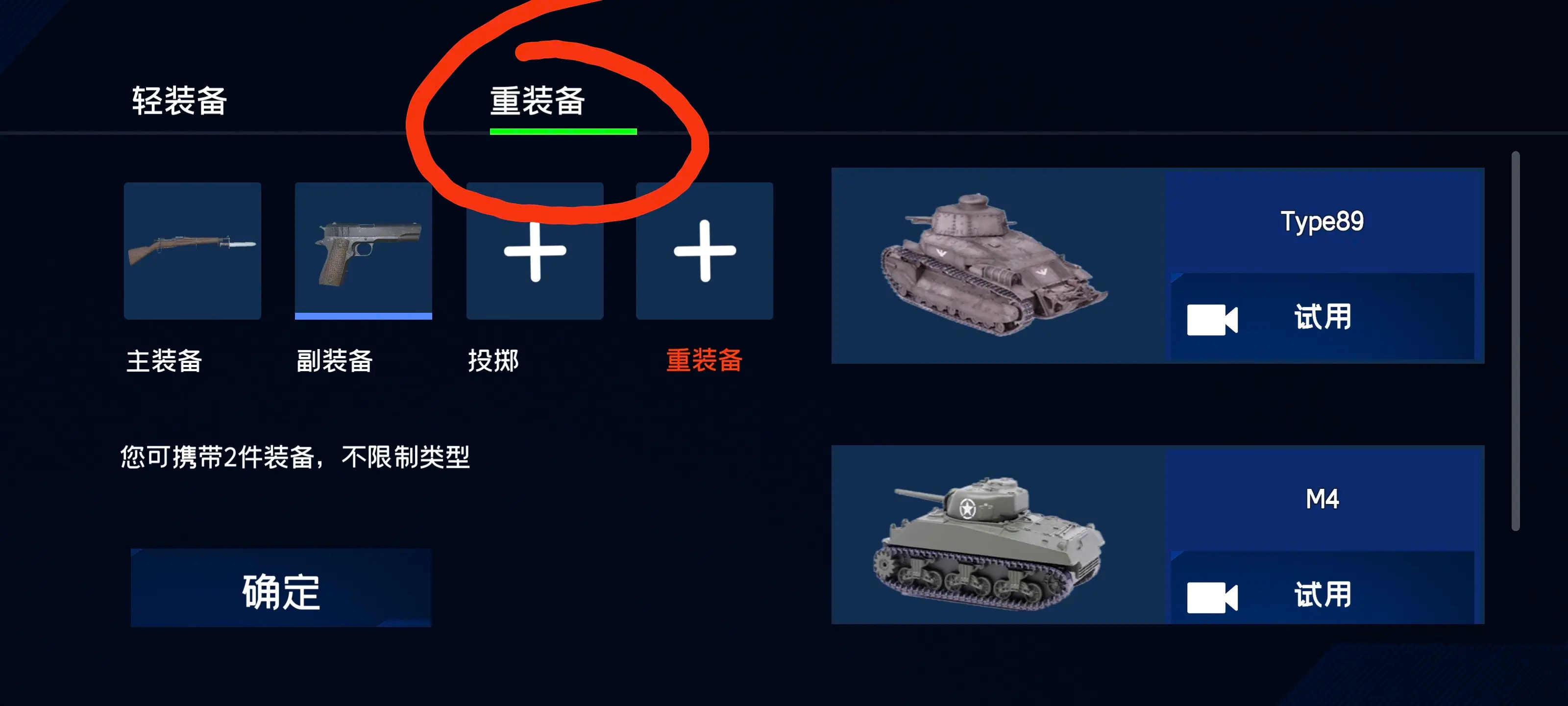 获取坦克的方法如下:在装备选择界面中,找到并点击“重装备”选项,此时游戏场景里会出现一辆静止的坦克。你只需靠近并坐上去,就能开始驾驶它了。