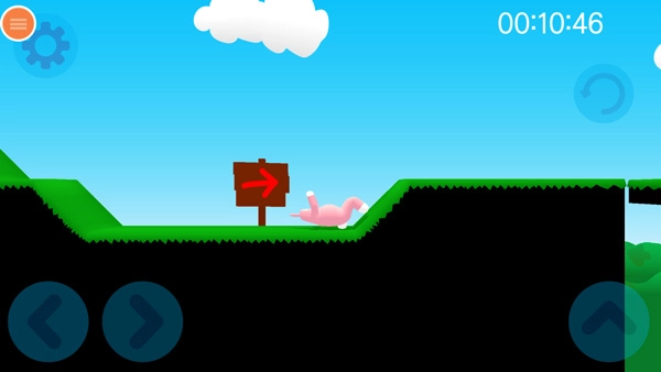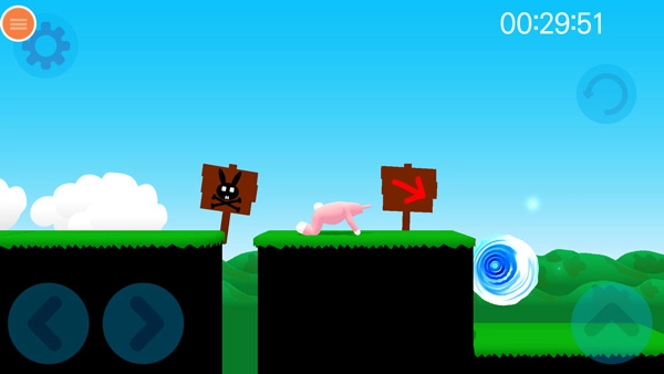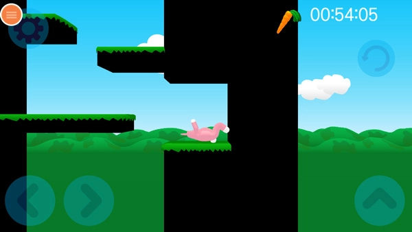 现在正式开启关卡挑战,首先要熟悉操作流程:左下方的左右按钮用于控制兔子人移动,右侧的按钮则负责跳跃功能。