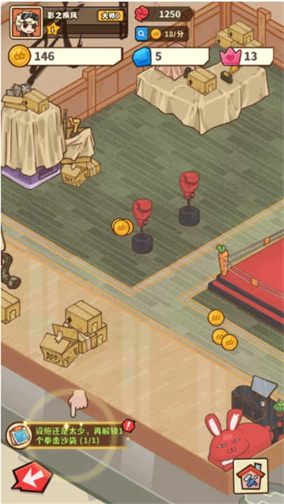 有众多设施可供玩家选择解锁并升级,你需要经营和管理一家规模很大的拳击店。