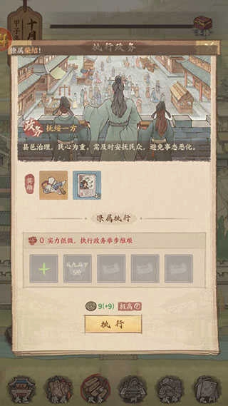 政务玩法是游戏里颇为关键的内容板块,玩家需依据政务任务的具体要求挑选合适的幕僚进行派遣。主动完成这些政务任务,既能收获可观的奖励,又能提高县令的声望与等级,从而让升级进程变得更为迅速。