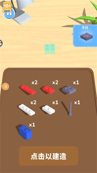 根据右上角的提示,点击对应的积木开始搭建;