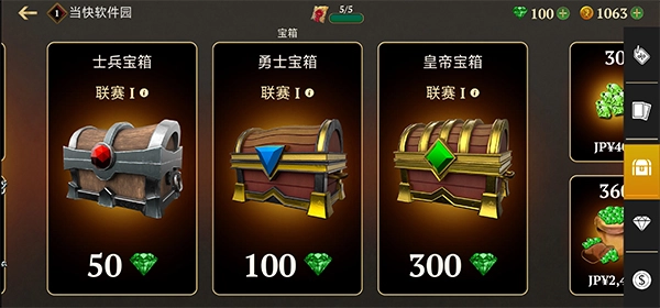 在首页能看到可通过氪金购买的普通宝箱和更高级的红宝石宝箱,其他宝箱的购买入口可点击右侧的宝箱图标进入。