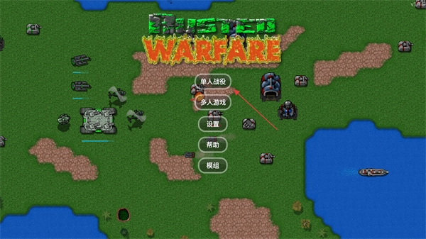 进入游戏主界面,映入眼帘的是像素风格的画面,接着点击单人战役选项,进入关卡列表。