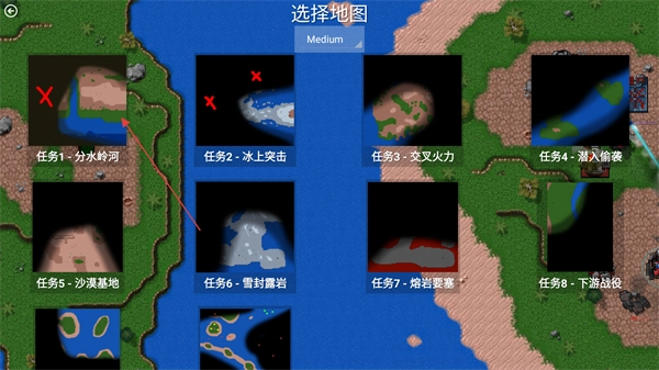 你可以选择对应任务的地图,比如任务1-分水岭河,开启战役模式;也可以选择多人游戏,和其他玩家联机对战。