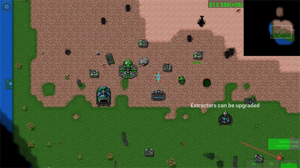在军工厂里制造坦克、直升机这类作战单位,点击Select-Group按钮把部队编成小组,借助不同兵种的独特属性来和敌方单位展开对抗。