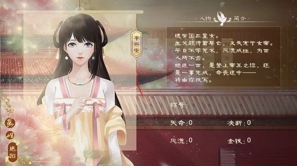 决断:(俗称孤寡值)决断值越高,角色越偏向理性冷漠,具备强烈的自主判断能力;决断值低时,女主角则更为感性,更看重情感。这一数值会对剧情走向和结局分支产生影响——决断值高的女主角,会踏上为追逐权力而不惜牺牲包括男性角色在内的一切的铁血之路;而决断值低的女主角,会选择优先守护身边的人,甚至愿意为此牺牲自我。