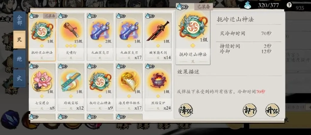将神兵依据功能划分为四个类别:①开启组件(灭)、②增益组件(诀)、③充能组件(式)、④辅助组件(式)