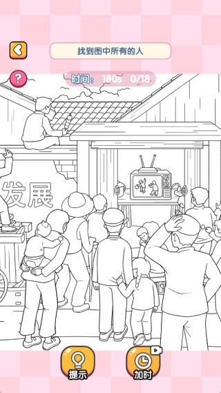 玩家需要在限定时间内找出图里的所有人物,点击人物即可完成标记,把各个位置的人都找出来就能顺利通关。