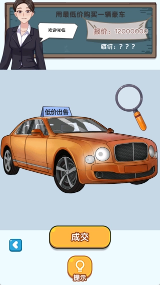 玩家能够自由尝试进行报价,在报价的过程里去猜测豪车的最低价格,以此来考验玩家的独立思考能力。