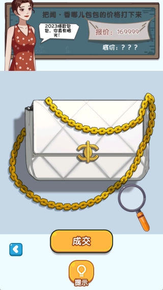 运用自己的智慧去推测包包的价格,尝试不同区间的报价,以合理的价格将包包购入。
