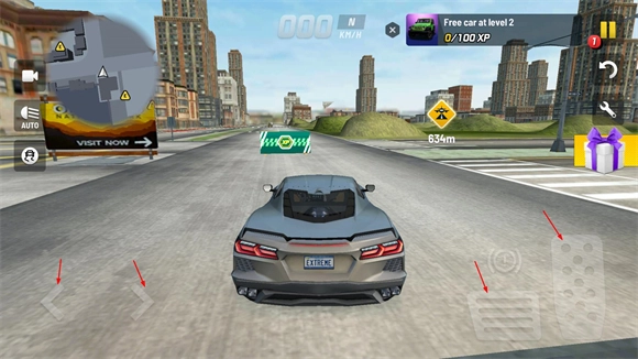 选择一种模式进入地图后,屏幕右侧的控制键用于操控车辆前进和刹车,左侧的控制键则负责调整汽车的转向方向。
