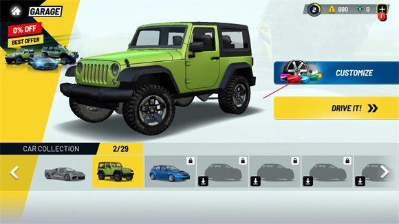 用金币和钻石购买的车辆,可在车库中查看;消耗相应数量的金币与钻石,即可完成解锁。