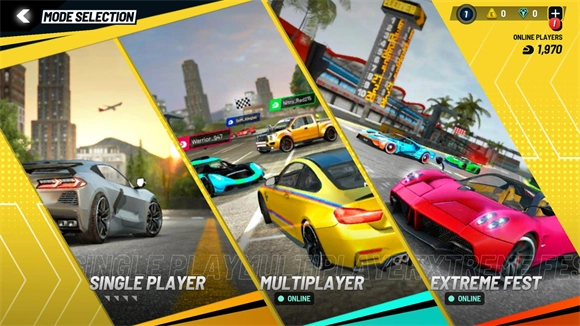 点击后可选择游玩模式,包含单人游玩、多人游戏和极限竞速三种。