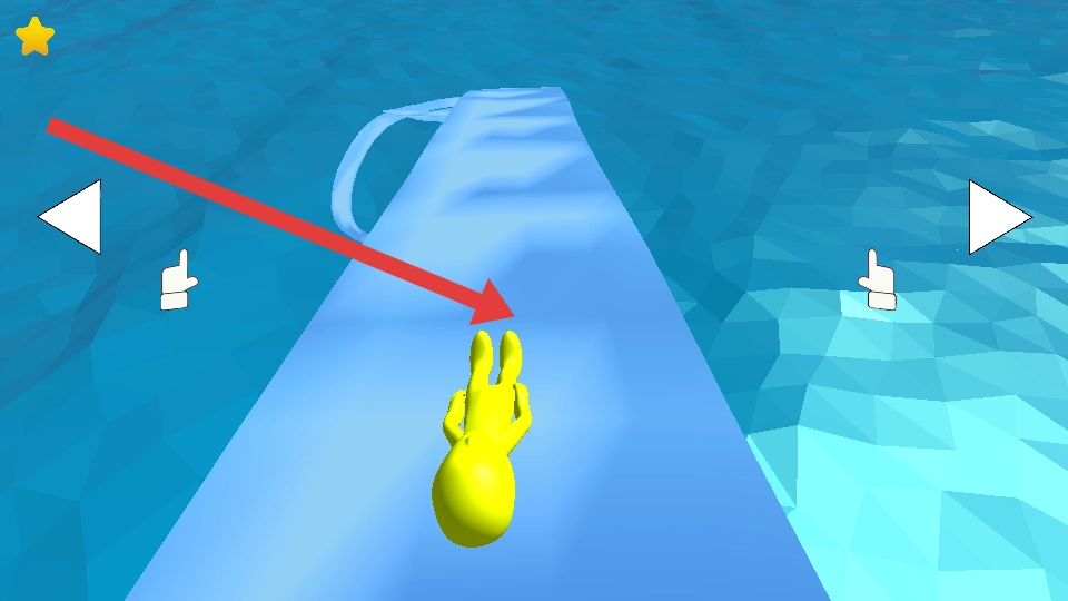 在曲折的水上滑道里滑行时,通过左右方向按钮来操控角色的滑行方向,要始终让角色处于滑道范围内,防止其落入水中。