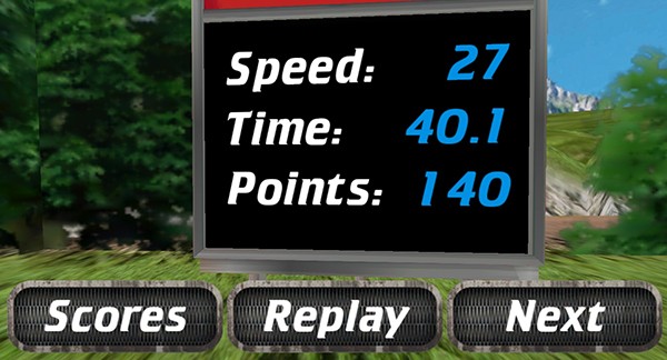顺利冲过终点线就能完成当前关卡,你可以查看自己的速度数据和通关用时。要是对成绩不太满意,点击“replay”就能重新挑战;如果觉得结果不错,那就点击“next”进入下一关继续挑战吧。