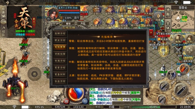 中氪玩家可以解锁至尊特权与天命特权,前期开荒时独孤九剑建议点6点,这一点至关重要。职业方面推荐法战、法道组合。完成拉镖任务后,建议前往打宝地图,先获取一套基础装备,再开始发育并逐步包图。